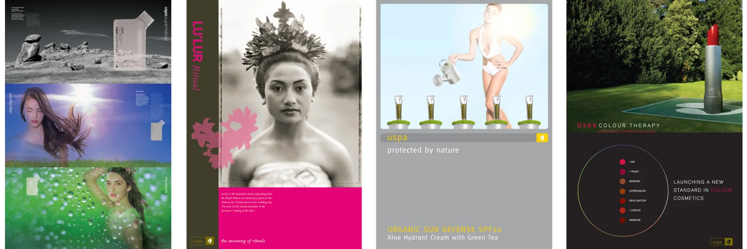 A range of brand communications for Uspa, an Australian skin and haircare company with worldwide distribution. With products ranging from skin and haircare, Javanese ritual bath and massage packs, organic sunscreen and cosmetics, Uspa is about a wholistic, natural approach to beauty based on the science of nature and all Australian ingredients. The Studiosmith creative approach to the diversity of the brand was to use an emotive, soulful and expressive tone of voice for each unique product, while reflecting their function and point of difference.