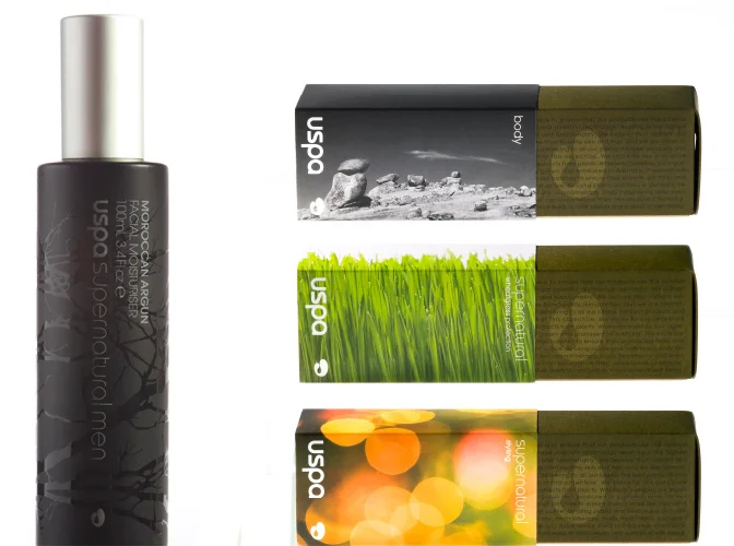 A range of packaging for Uspa, an Australian skincare and haircare brand which has distribution in hotels and spas worldwide and is based in Melbourne. Supernatural is a complete collection of body and haircare products for men and women with a focus on all Australian natural, organic ingredients. The Supernatural brand was launched in Australia, USA and Europe with full print communications collateral and website. The Studiosmith approach was to combine the minimalist and innovative packaging formats with restrained, elegant typography and powerful imagery to provide a look evocative of nature, light. landscape and the senses. This is an important part of the brand aesthetic: connection to ingredients and aromas unique to the Australian environment.